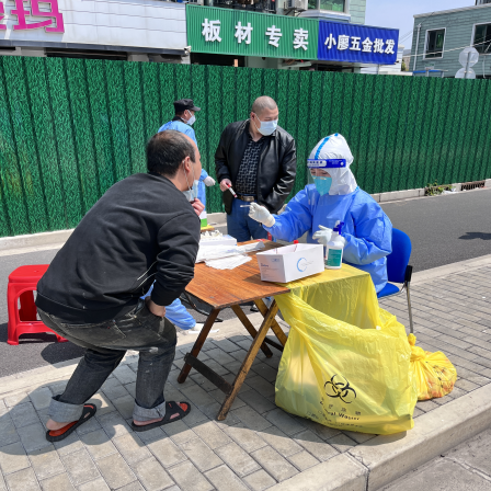 今天到最后一个场地的时候,时间已经到了近10点,正是太阳最猛烈的时候。而我们到达的采样地点在路边。防疫工作人员、志愿者还有司机都担心我们在没有帐篷也没有树荫的情况下工作会不会中暑。后来我们咬咬牙关,在40分钟内完成了该组的采样工作。天气炎热、环境简陋,我们都一一克服。
